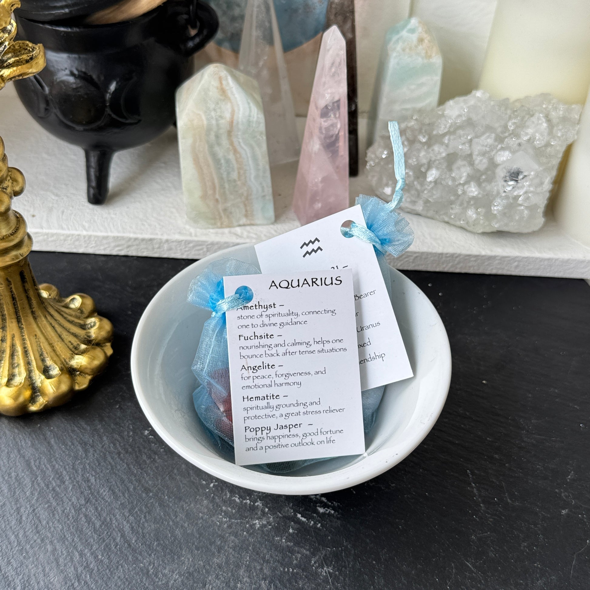 Aquarius energy is innovative, independent and future focused. This kit strengthens spiritual clarity while grounding visionary ideas into reality.