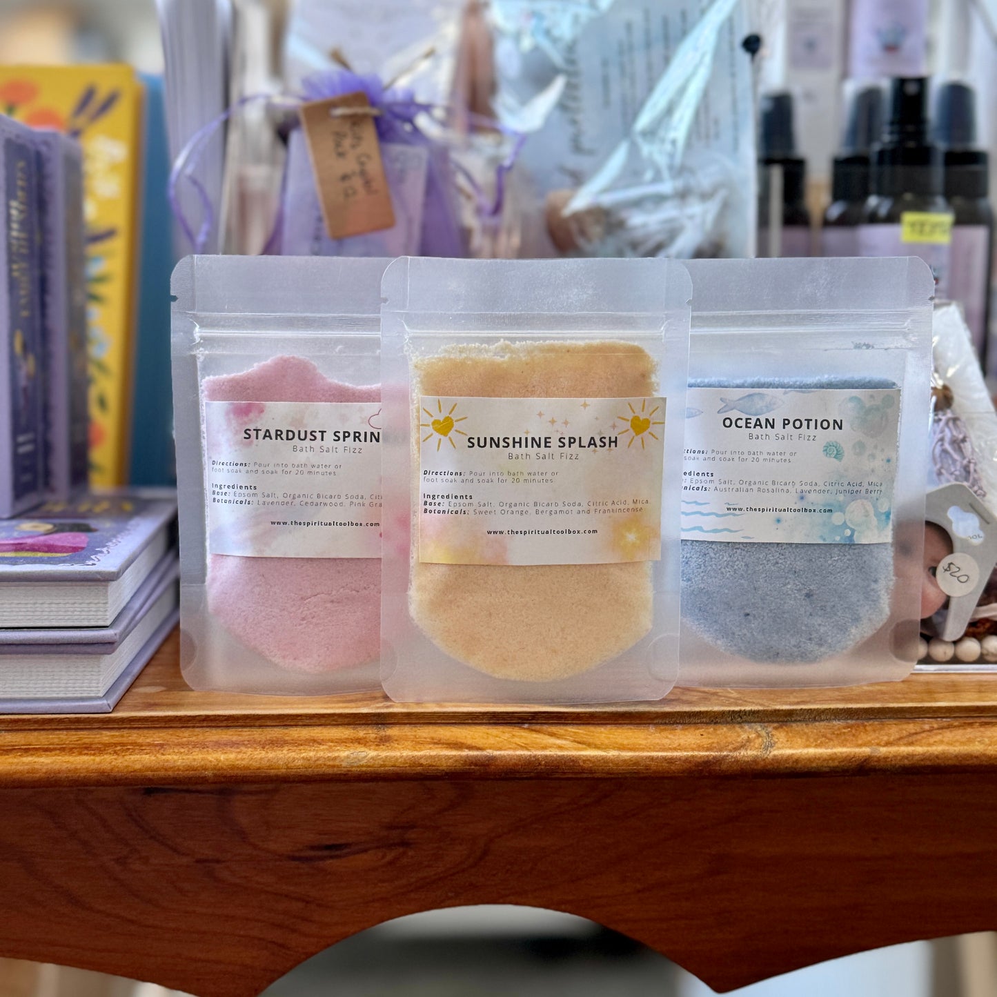 Perfect for sensitive skin, our Enchanted Bath Salt Fizz is free from harsh chemicals and synthetic fragrances, ensuring a skin-safe and environmentally friendly bath time experience.