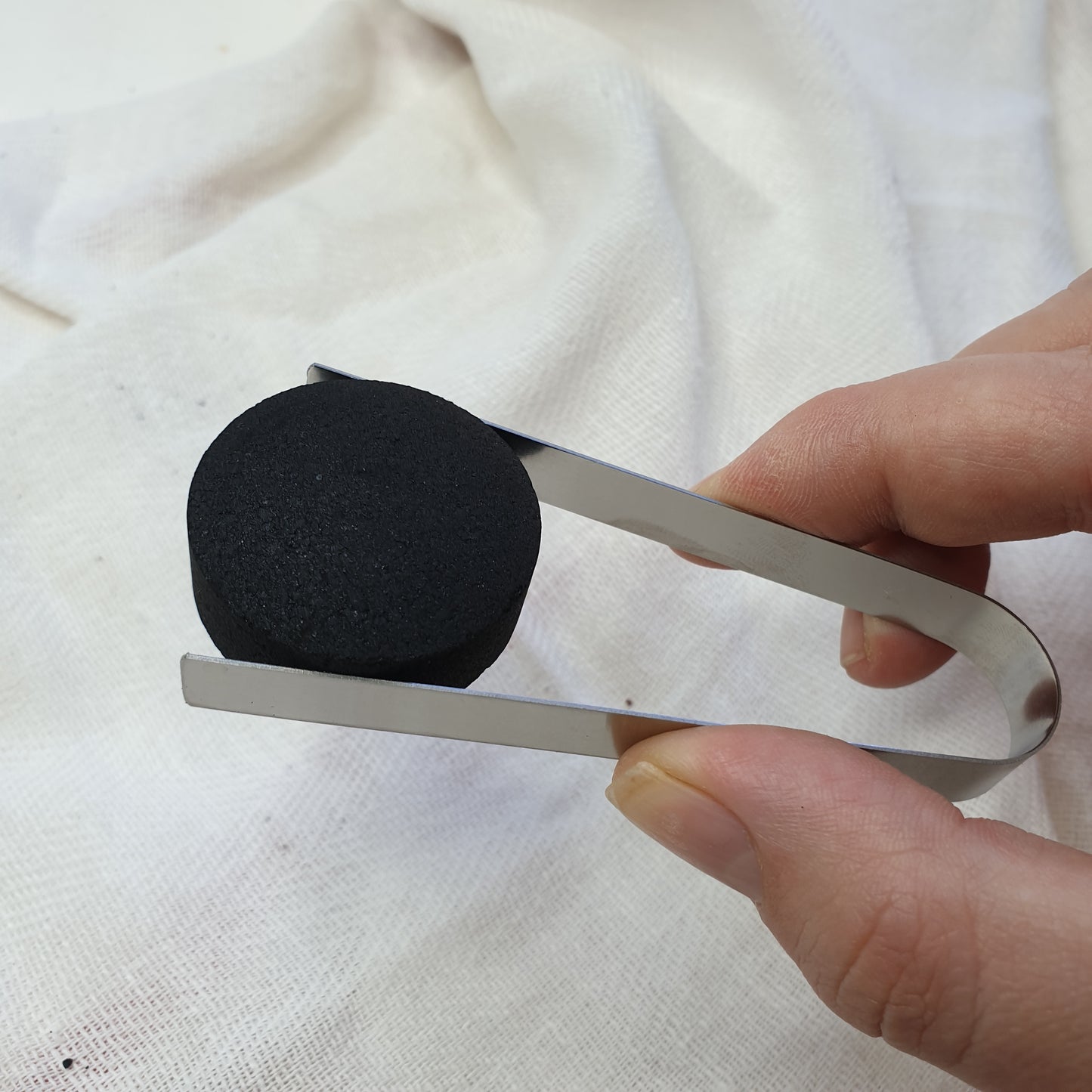 Stainless steel tongs to handle burning charcoal discs and herbs