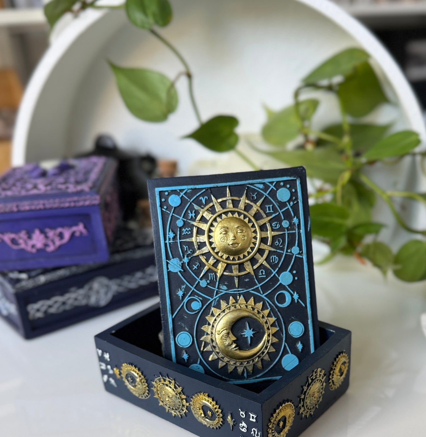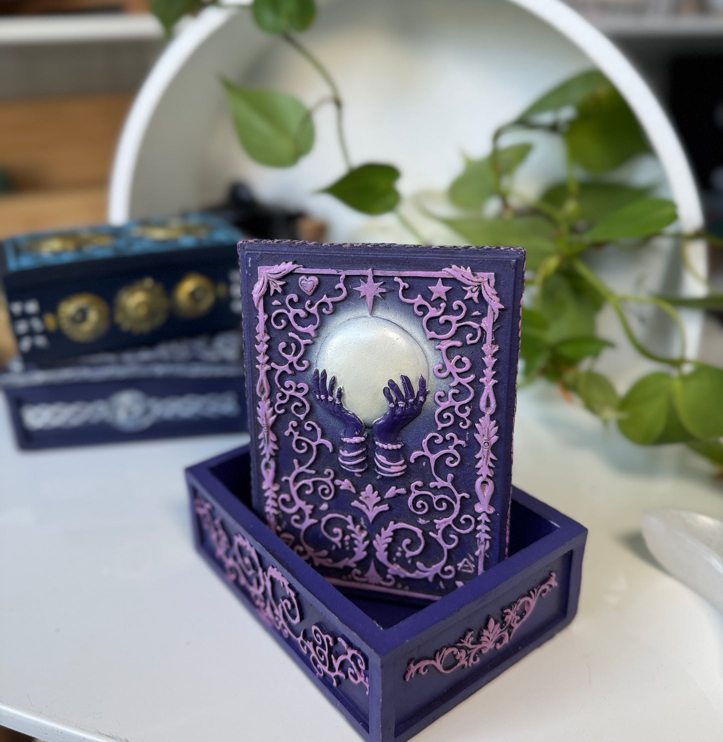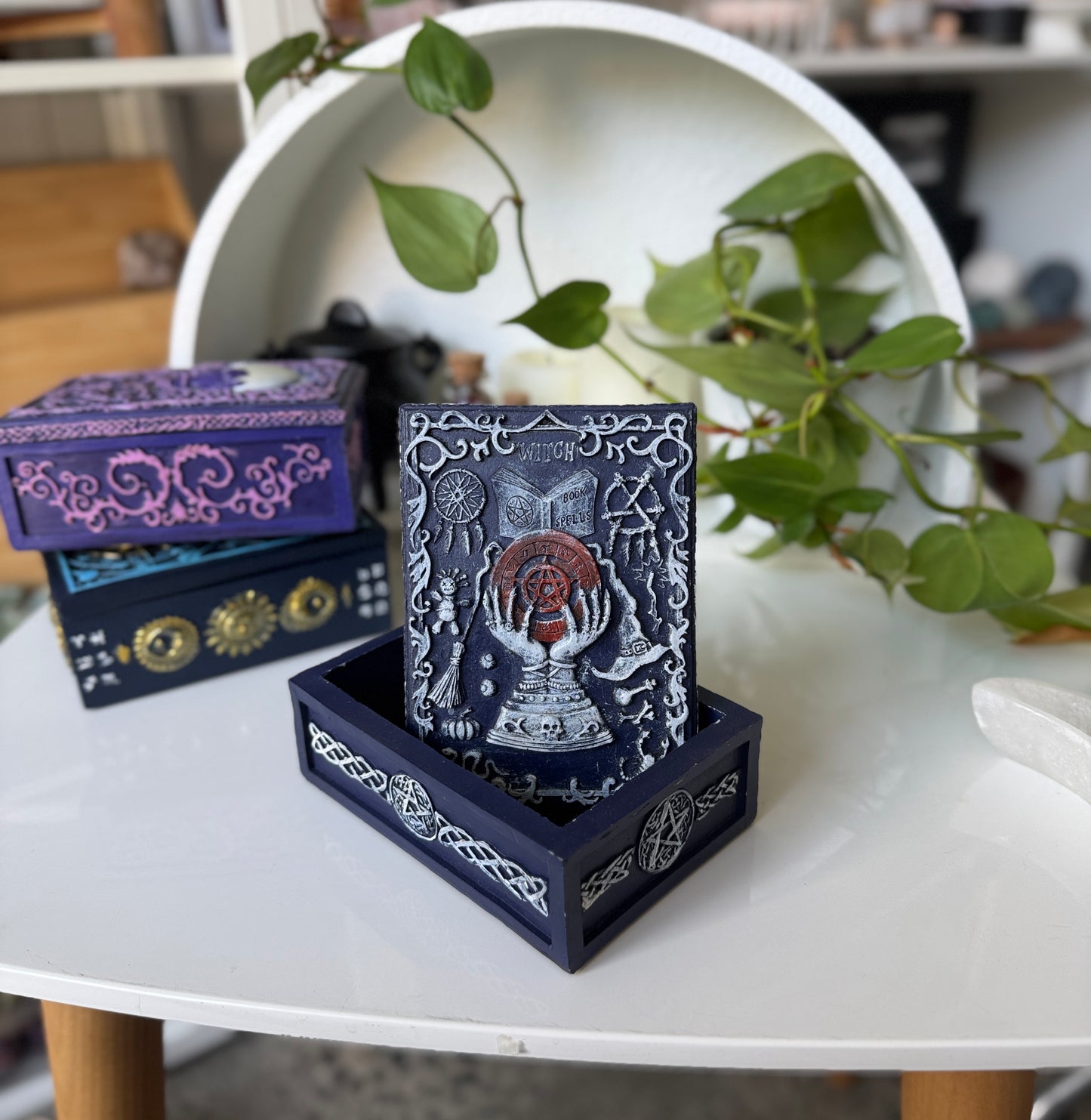 Perfect for those who love a touch of mystical charm, this trinket box makes a thoughtful gift or a stylish addition to your altar, bedside table, or sacred space. Whether you’re storing rings, pendants, or meaningful keepsakes, this box keeps them safe while adding a touch of enchantment to your collection.