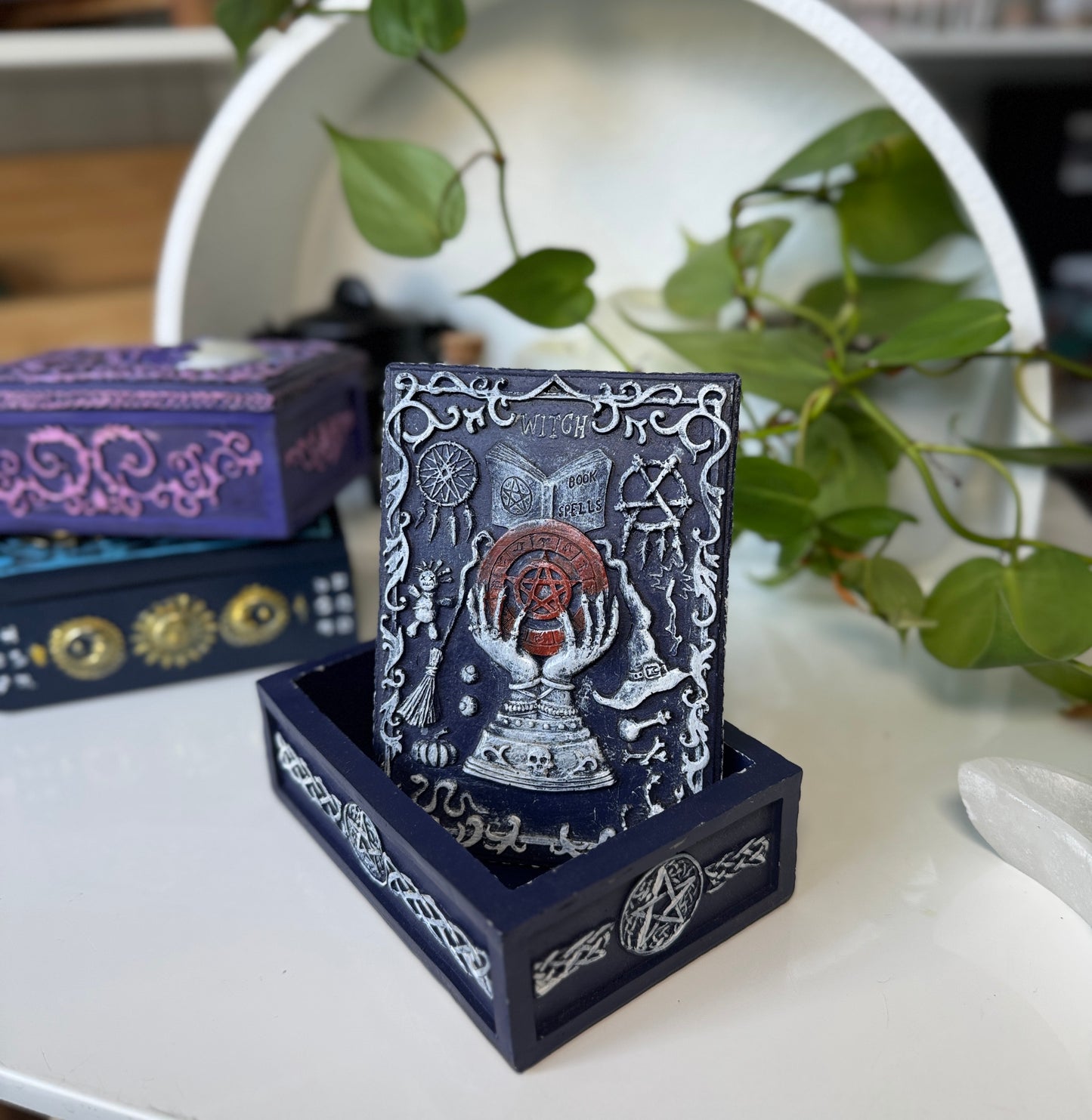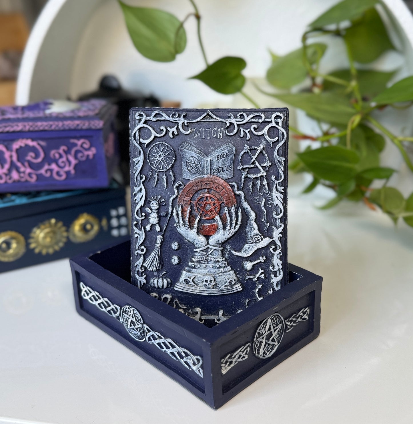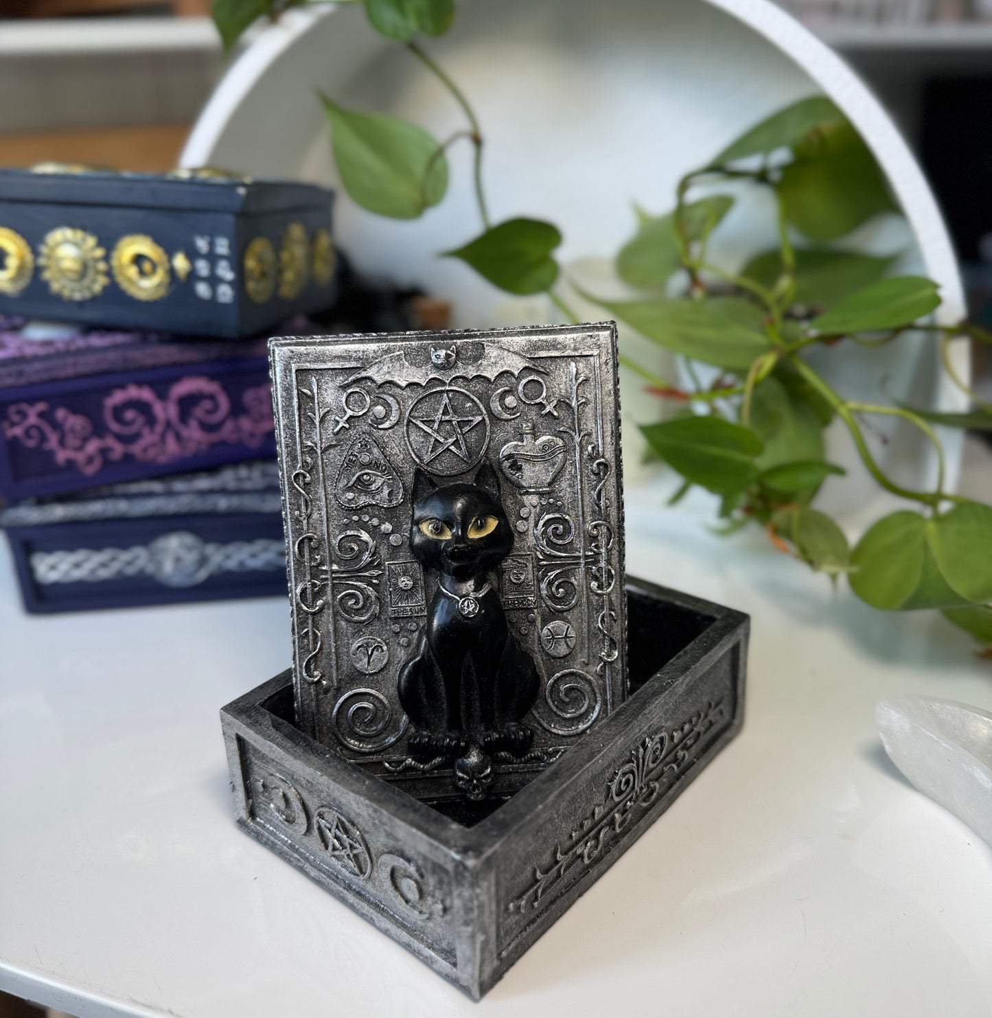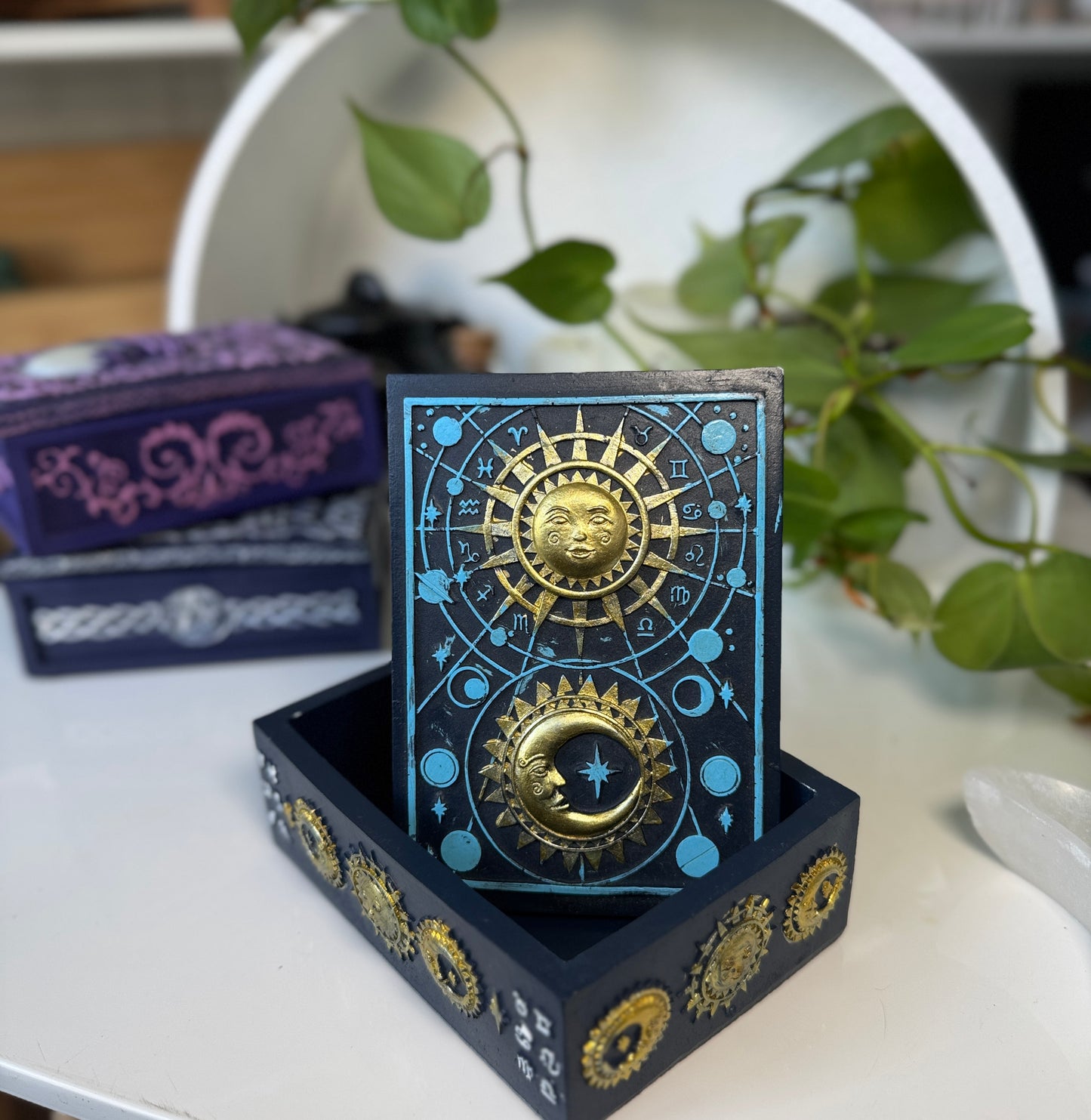 Perfect for those who love a touch of mystical charm, this trinket box makes a thoughtful gift or a stylish addition to your altar, bedside table, or sacred space. Whether you’re storing rings, pendants, or meaningful keepsakes, this box keeps them safe while adding a touch of enchantment to your collection.