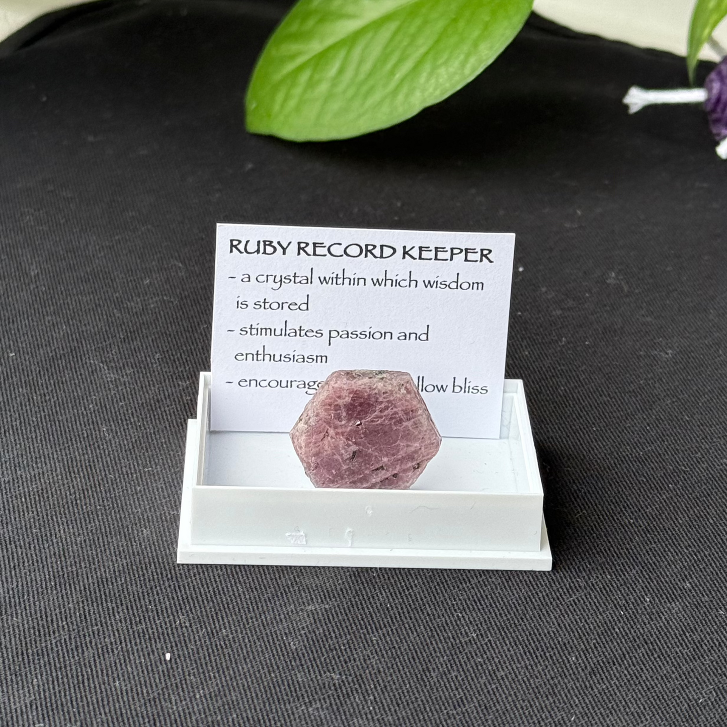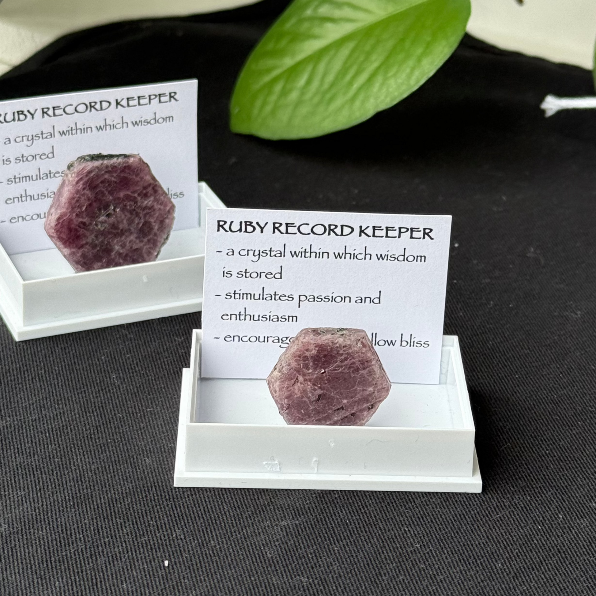 Ruby on its own is powerful—fire, passion, vitality. Add Record Keeper triangle markings, and now you’re holding something encoded. These natural glyphs are said to store ancient knowledge, accessible through meditation and focused intention.