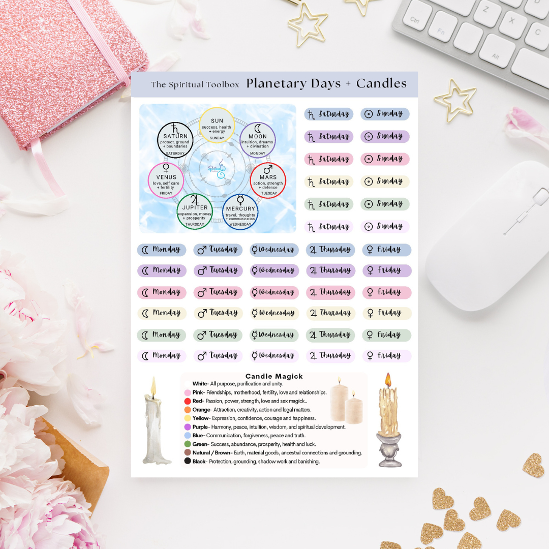 Sticker Sheet | Planetary Days + Candle Correspondences