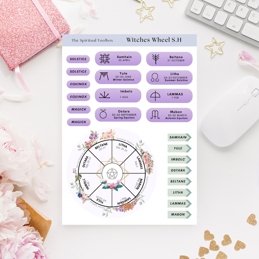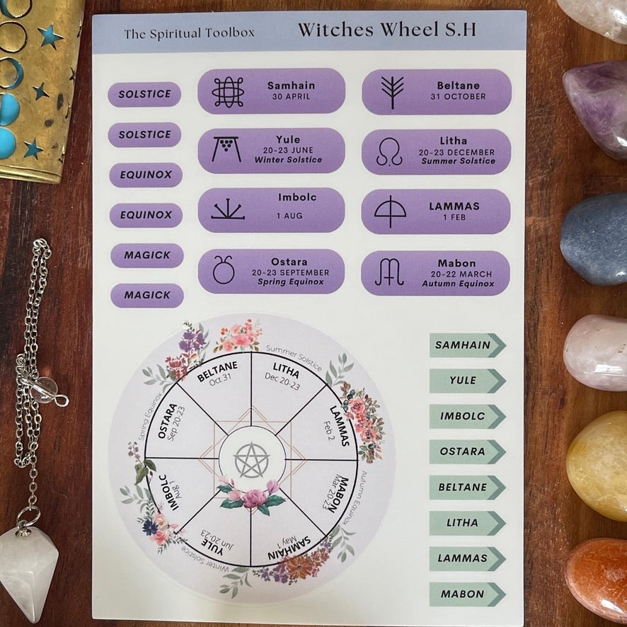 Decorate your journal, planner, or book of shadows with these Southern Hemisphere based Witches Wheel stickers. All dates based off off Sydney timezone.