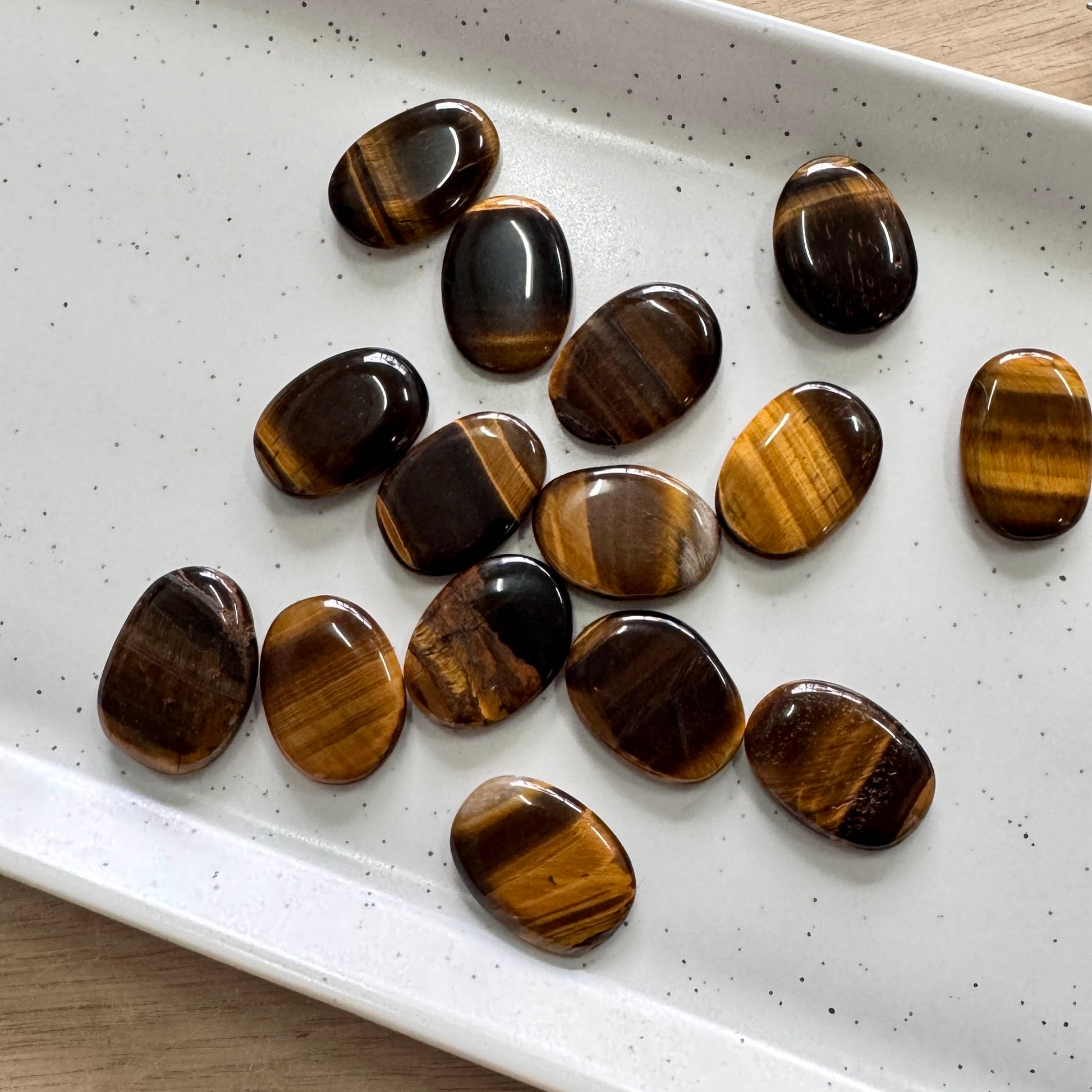 Tiger’s Eye gets you moving without spinning out. These golden-brown 3cm polished flat stones balance ambition with grounding, helping you stay clear, sharp, and steady in your direction.