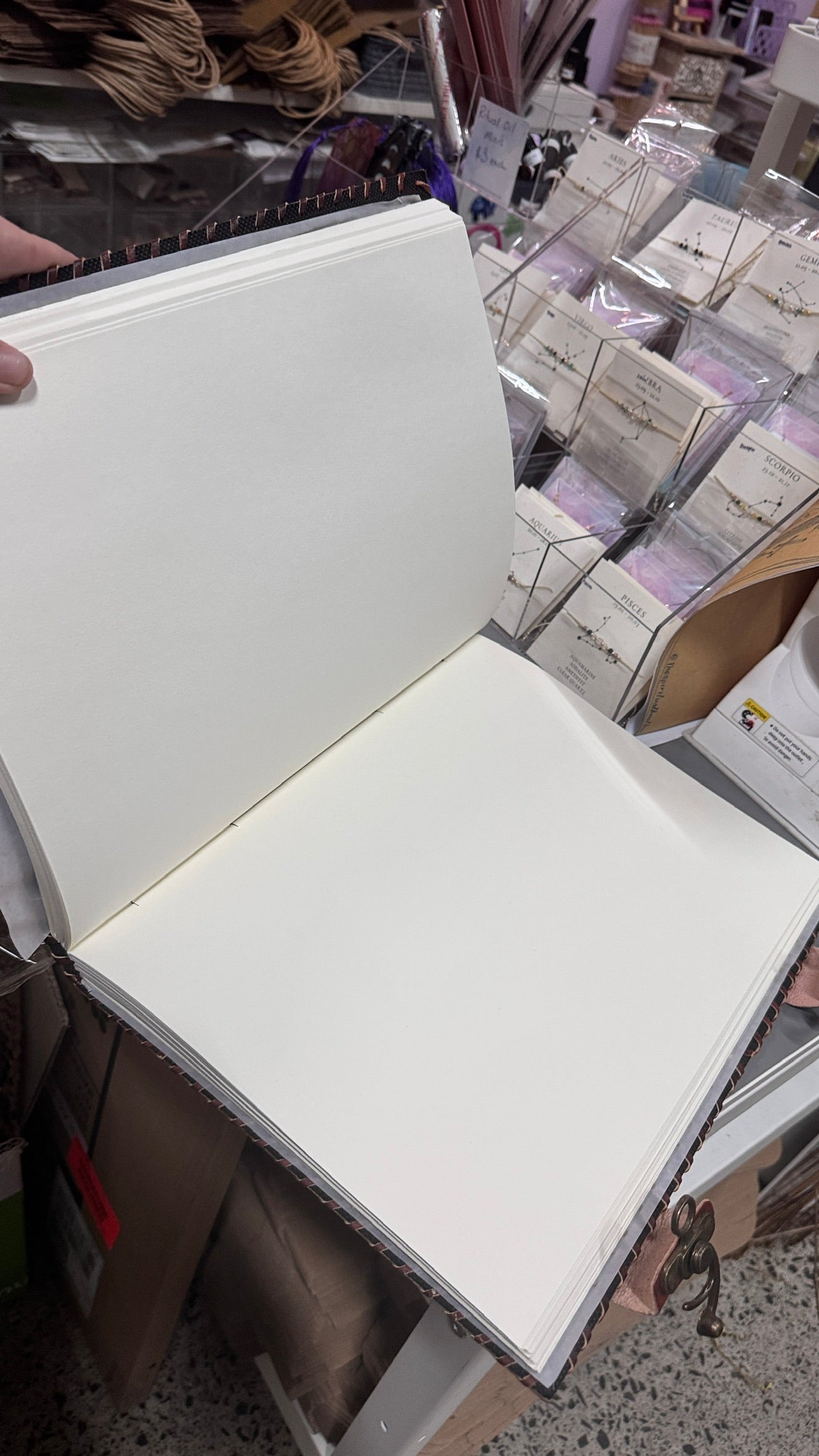 This oversized grimoire is your blank canvas for magic, musings, rituals, or raw thoughts. With sturdy blank white pages, it’s made for ink, sketches, pressed herbs, and the occasional tea stain that marks a life well lived.